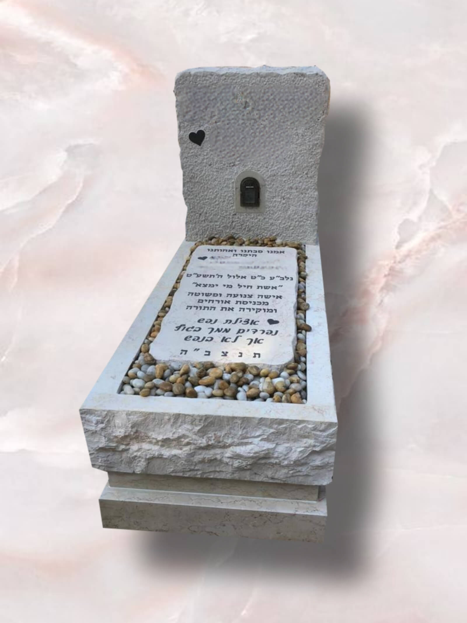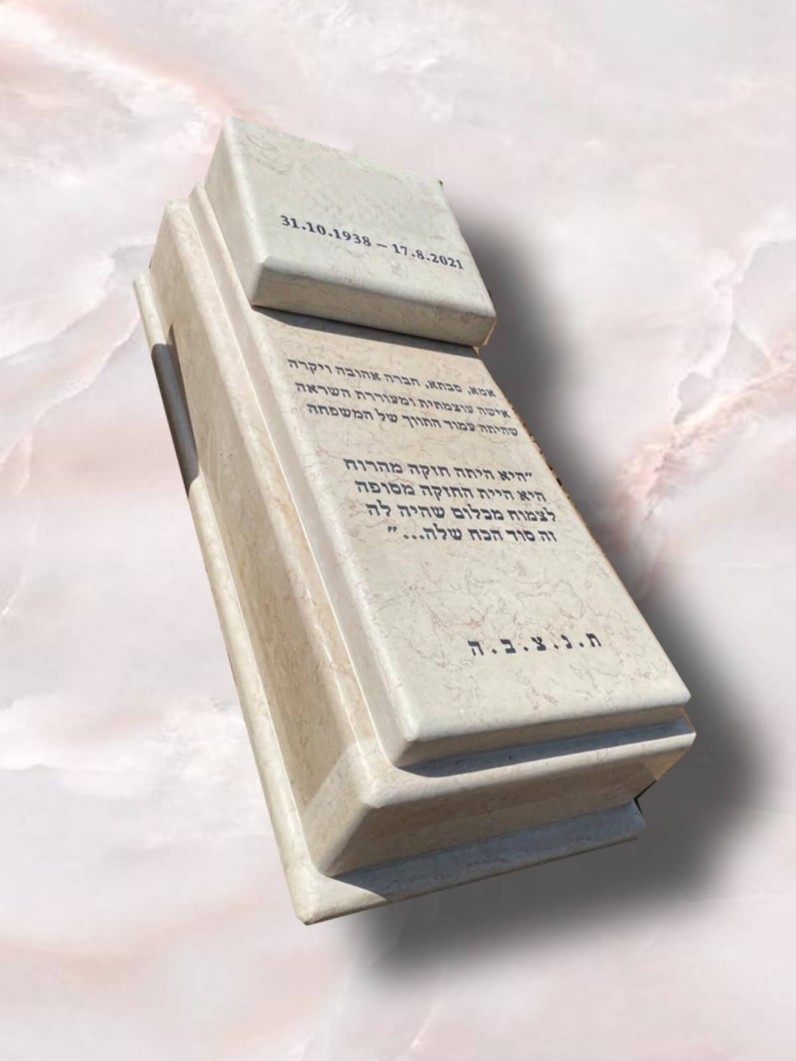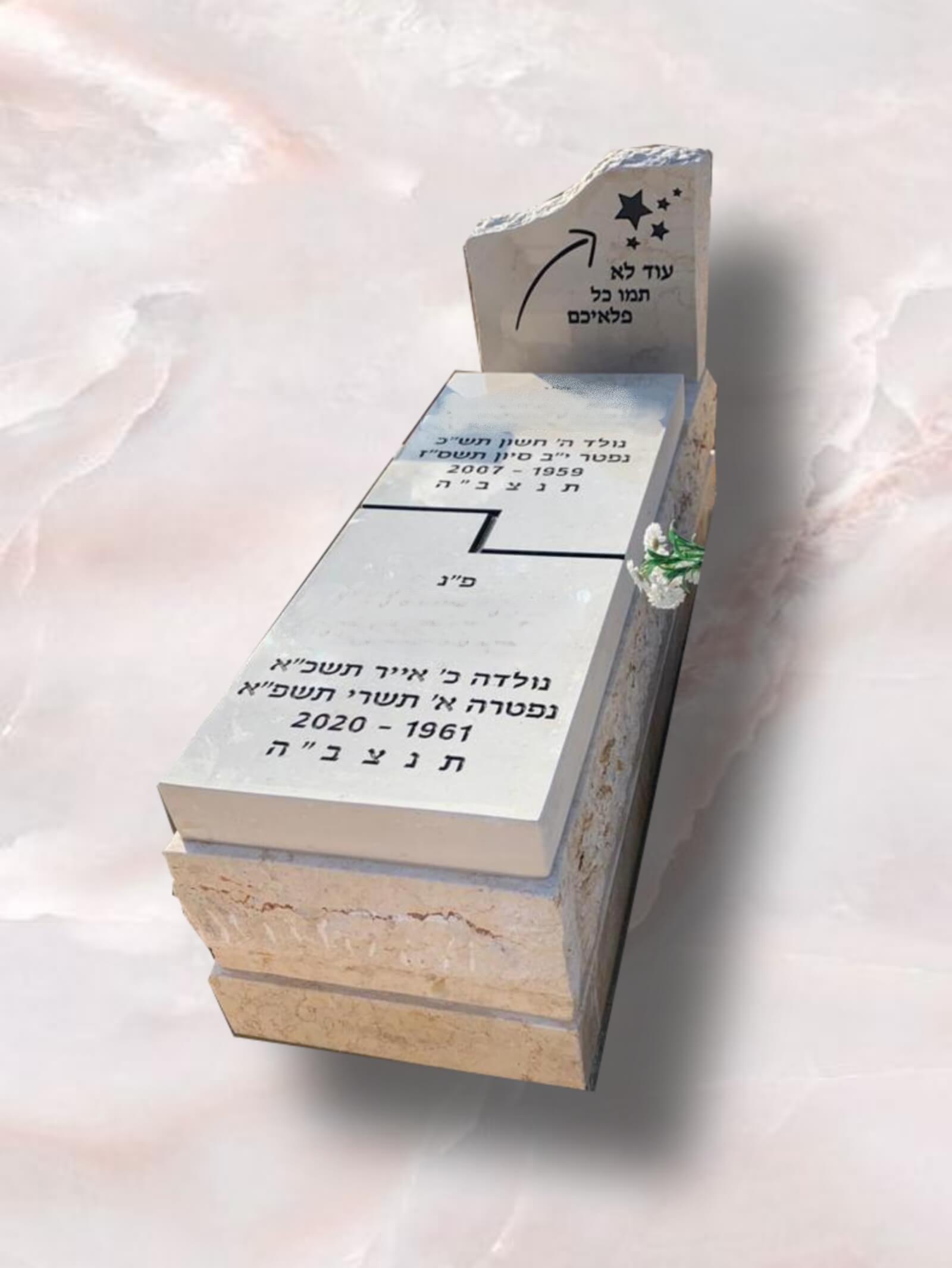 - מראה טבעי ופשוט- הגוון הבהיר, בצבעי קרם עד לבן טבעי, והמרקם החלק של האבן מעניקים למצבות מראה קלאסי ונקי, שמתאים במיוחד לסגנון מסורתי.